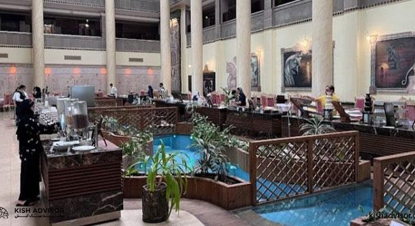 کافیشاپ این هتل روبهروی دریاست و استخری برای مردان در آنجا وجود دارد. مهمترین رستوران این هتل رستوران آپادانا در طبقه همکف هتل است. سقف بلند این رستوران الهام گرفته از سبک سلطنتی هخامنشی است. شهرت اصلی رستوران آپادانا به دلیل غذاهای خوشمزهای است که طبخ میکند. انواع کباب، پاچین، ته چین، چلوگوشت، انواع غذاهای برنجی، عدس پلو، استانبولی، انواع خورشت ایرانی مانند قیمه نثار در منو این رستوران وجود دارند. رستوران پاسارگارد داریوش یکی دیگر از رستورانهای مجلل این هتل باشکوه است که منوی جذابی از غذاهای بینالمللی و دریایی را در اختیار شما قرار میدهد.