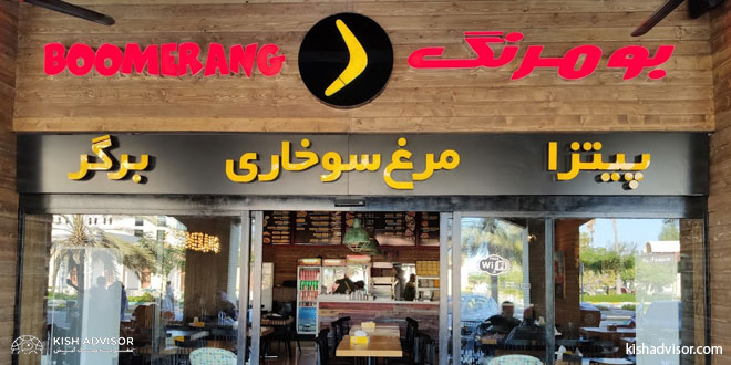 یکی از لوکسترین رستورانهایی که در میان کیشوندان شناخته شده است و به مسافران پیشنهاد میشود رستوران بومرنگ است. شما میتوانید در این رستوران انواع غذای فست فود را با طراحی مدرن و طعم متفاوت میل نمایید. اگر به ظاهر غذاهای این رستوران نگاهی بیاندازید، متوجه میشوید این غذاها دارای ظاهری خاص هستند که از لحاظ بصری حس خوشی را در شما به وجود میآورند. در نتیجه، حتی برای یکبار هم که شده باید به بومرنگ بروید و حال و هوای خود را عوض کنید.