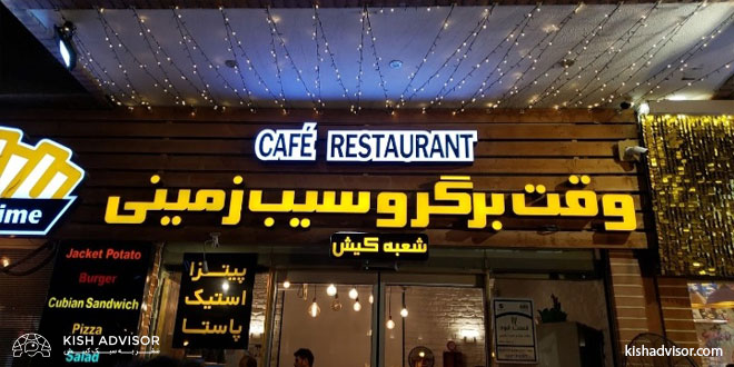 فست فود وقت برگر و سیب زمینی انواع غذاهای فست فود و خوش طعم را به شما عرضه میدهد. سیبزمینیها و برگرهای این رستوران در سراسر کیش شناختهشده هستند و بسیاری از افراد بر این باور هستند برگرهای این رستوران در هیچجای دیگر یافت نمیشود. افرادی که تمایل دارند غذای خود را در فضای باز میل نمایند، حتما باید به این رستوران سر بزنند. زیرا در این رستوران فضایی در محیط بیرون در نظر گرفته شده است که شما میتوانید در آنجا بنشینید و غذاهای مورد علاقه خود را میل نمایید.